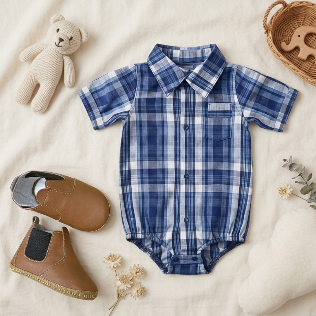 O body estilo camisa xadrez é confeccionado em tecido leve, macio e de alta qualidade, garantindo máximo conforto para o bebê. Possui gola estilosa que traz um visual moderno e charmoso, com estampa xadrez inspirada na moda country, ideal para compor looks autênticos e elegantes.