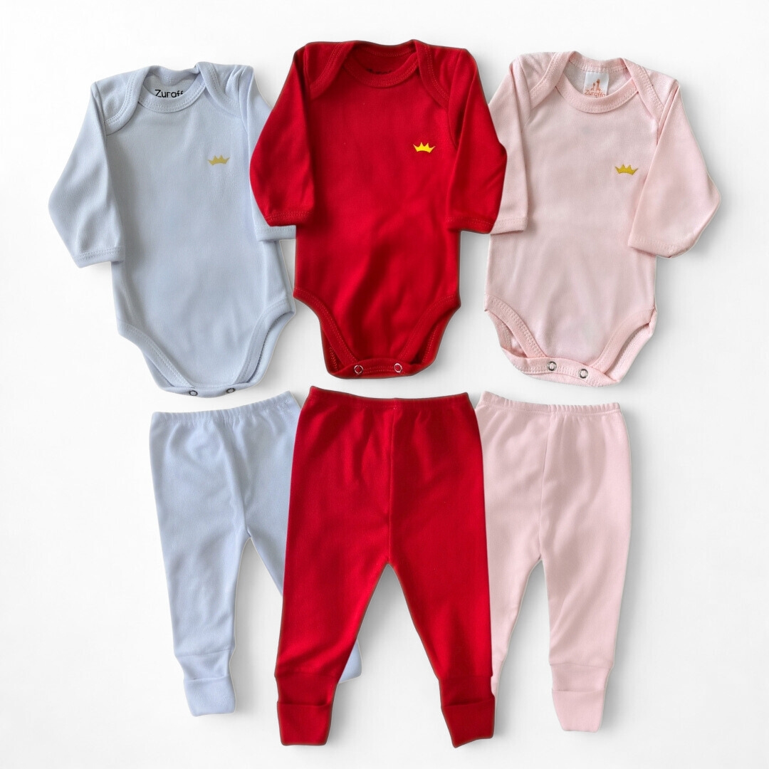 Kit 6 peças Body Manga Longa e Mijão Vira-Pé