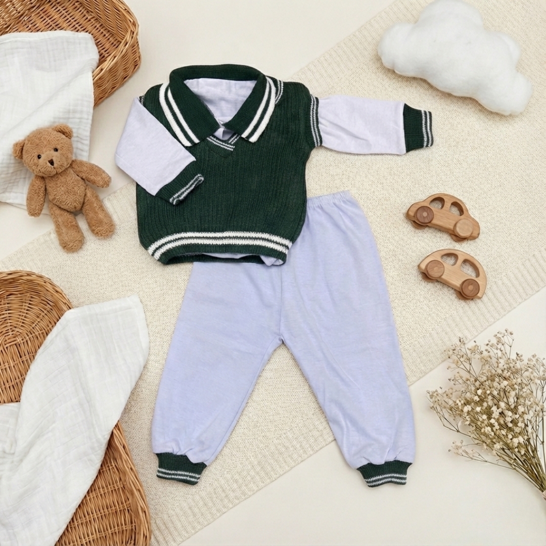 Encante-se com o Conjunto de Pagão de Linha Masculino, que combina o charme do tricô com o conforto da malha! Perfeito para seu bebê, este conjunto inclui um casaco em tricô, um body e um mijão em malha suave, oferecendo estilo e conforto para qualquer ocasião. Com materiais de alta qualidade, fechos práticos, costuras reforçadas e um design charmoso, este conjunto é durável e ideal para diversas ocasiões, destacando a beleza natural do seu bebê.