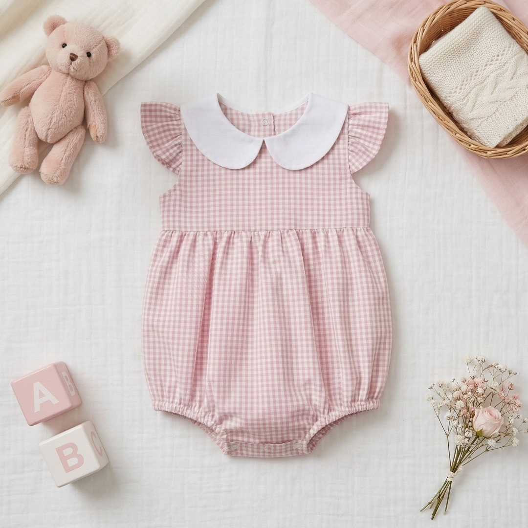 Romper Infantil Xadrez com Gola Personalizável – 100% Algodão