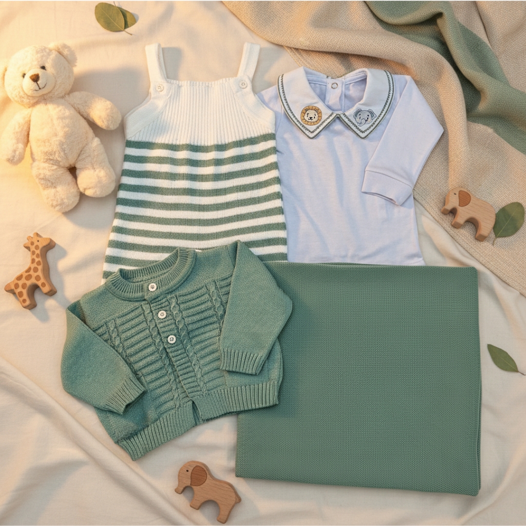 A Saída de Tricô Safari Menino foi escolhida para tornar a chegada do seu bebê ainda mais especial.